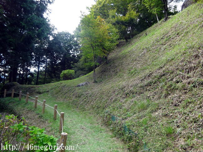 城内にチラホラ顔を出している巨石。この周辺の山は、こういった巨石が多いです。近くの大給城も巨石を活かした作りの城です。