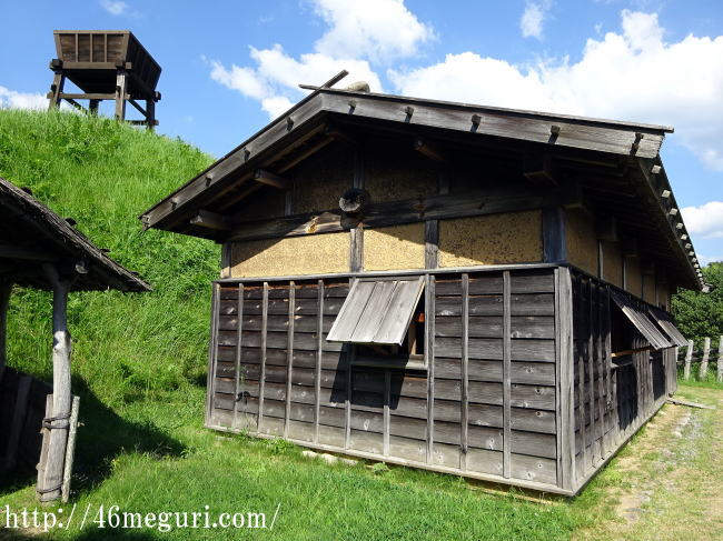 西の丸にある西物見台。これも発掘調査をもとに復元された建物なので、位置と大きさは戦国時代と同じです。たまに中に入る事ができます。