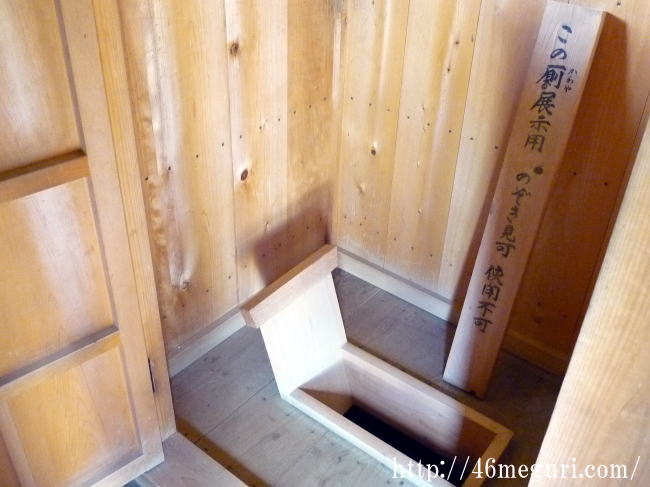 高櫓の中にある復元された厠(かわや)。トイレのことです。
