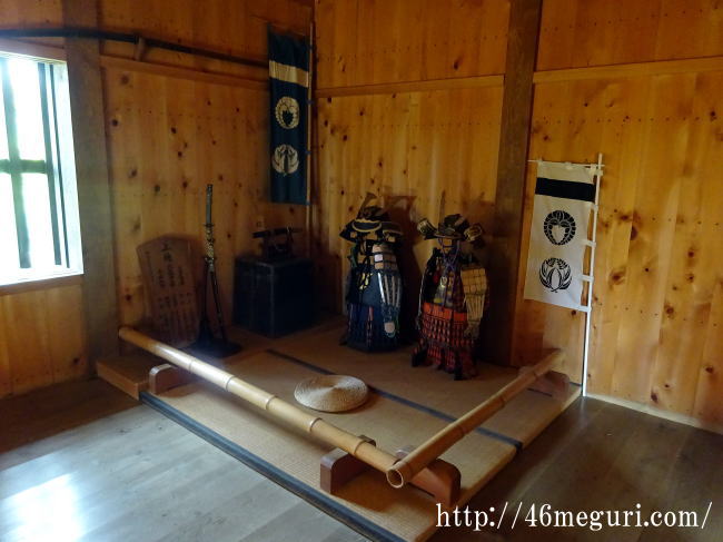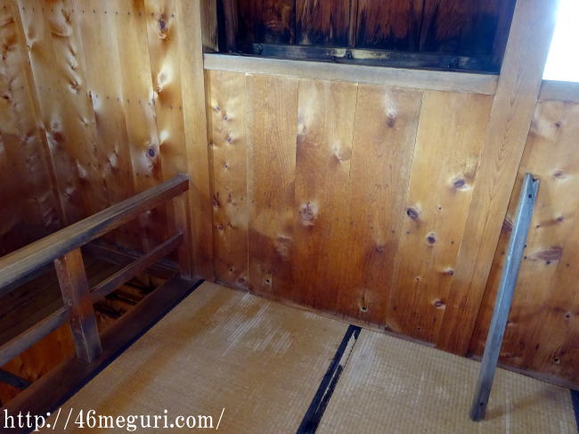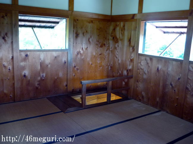 高櫓の二階。9畳の部屋になっています。足助城の四方を見渡すことができ、ここで来客の対応もしたそうです。