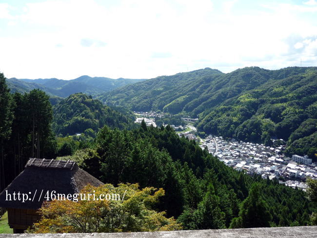 西の丸の向こうに現在の足助町の町が見えます。当時も建物は違いますが、中世の街並みが見えていたのでしょう。