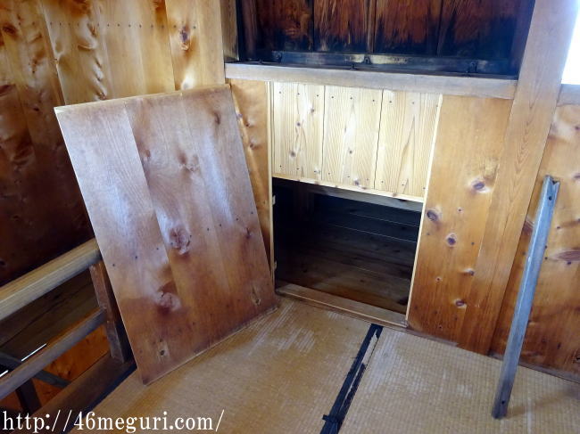 なんと壁の一部が開き、中から大人くらいの人間が出てくるスぺースがあるのです。実はこれ、武者隠しといって、来客が来た時、城主に危険が及びそうな時などは、ここから護衛の武士が出てこれる様に隠れる様にできています。
