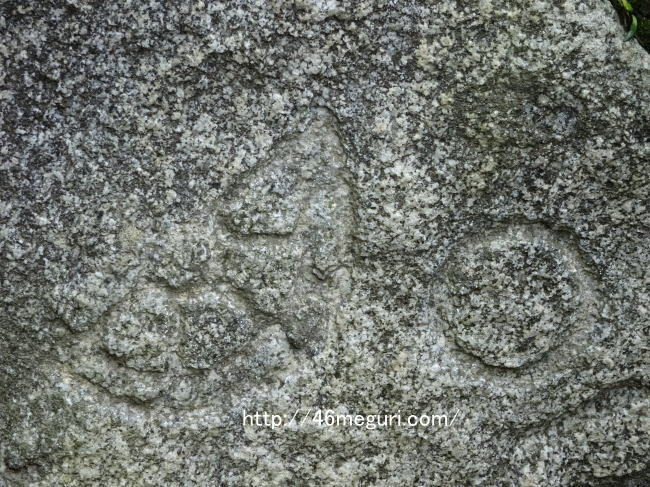 吉田城の石垣をよく見ると、たまに何か模様が入った石があることに気が付きます。
