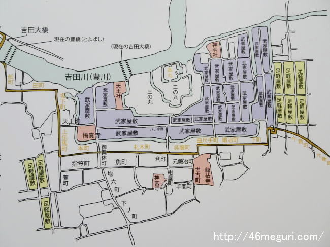 巨大な吉田城下町推定図もあります。町の配置と街道がよく分かるんです。