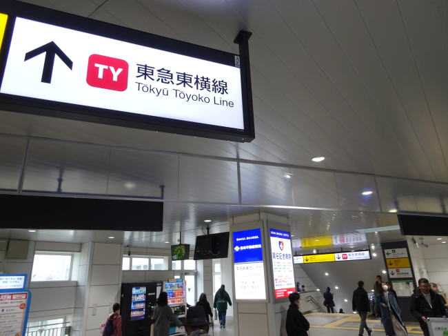 ここで東急東横線に乗り、みなとみらい駅を目指します。元町・中華街方面です。