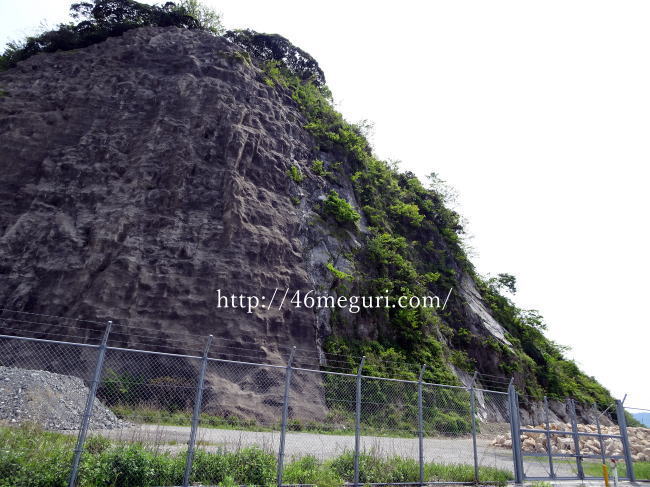 ちなみに金ヶ崎城は断崖絶壁に囲まれており、こんな岩肌がぐるっと取り巻いています。ほぼ直角ですね。当時、城を攻める人はジーパンやTシャツで城を攻めているのではなく、思い甲冑を着て城を攻めていました。つまりこの断崖絶壁を甲冑着て登ると考えてみると… 当時の方のご苦労も分かりますね。