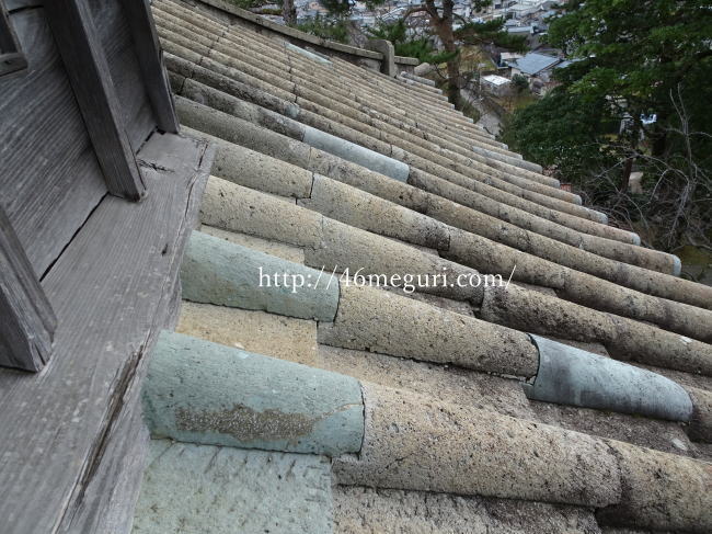 丸岡城天守の瓦をよく見てみると、なんだか青色に見えますね。実はこれ、笏谷石(しゃくだにいし)という石なんです。