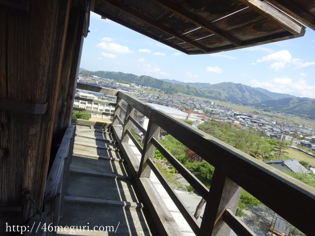 それでは丸岡城の廻縁(回縁:まわりえん:とも)に出てみたいと思います。廻縁とは、分かりやすく言うと天守のベランダみたいな部分。天気が良い日は廻縁に出て景色を眺めれば、気分も最高ですよね!