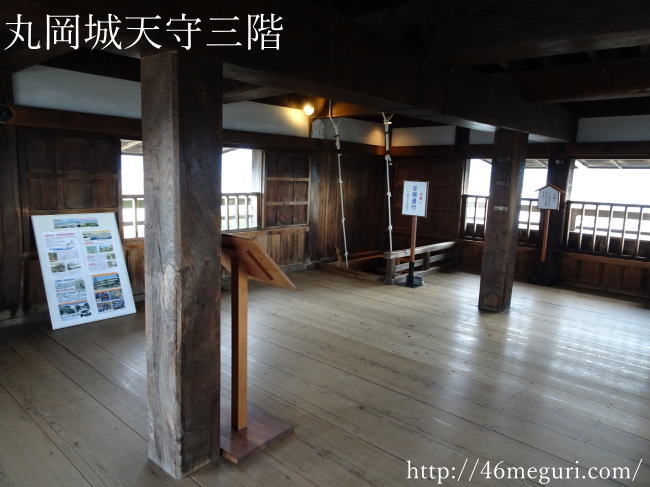 ようやく辿り着いた3階。ここが丸岡城天守の最上階です。奥にロープが見えますか?あれを掴んで登ってきたワケです(笑)