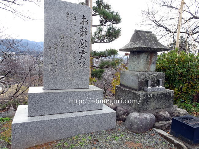 丸岡城には人柱伝説が残っています。柴田勝豊が丸岡城を築城している時、天守台の石垣が何度も崩れたので、人柱を入れる様に進言した者がいました。そこで人柱に選ばれたのが、2人の子供をかかえて貧しい暮らしをしていた片目の『お静』でした。