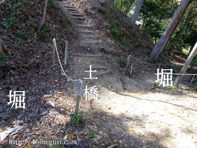 土橋(どばし)とは、簡単にいうと両側を堀で挟んだ土の細い橋のこと。