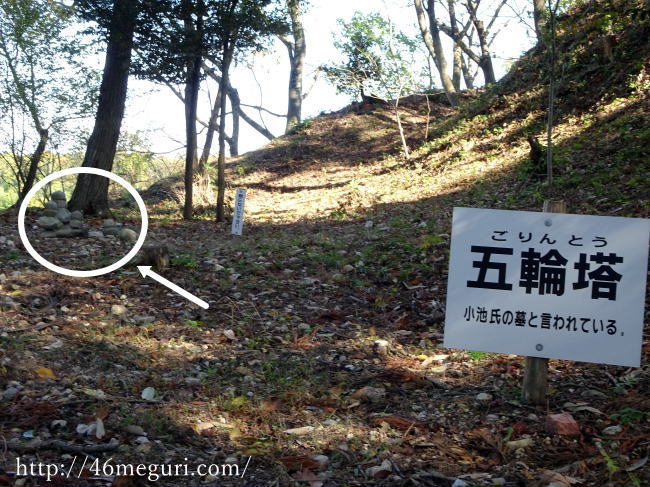 小池氏の館跡と伝わる三の丸のすぐ近くにあった五輪塔。古いお墓ですね。