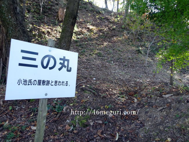 今城のふもとには、城主・小池氏の館跡がありました。現在では建物の柱跡や礎石などは残っていませんでした。