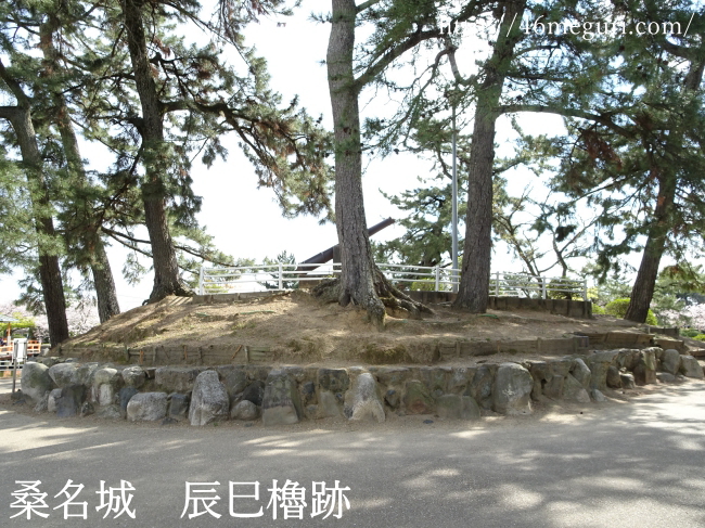 桑名城本丸の東南角にあった、三重の辰巳櫓跡。桑名城の天守は元禄十四年(1701)に焼失してしまい、その後再建されなかったので、ここにあった辰巳櫓が桑名城の天守替わりになりました。