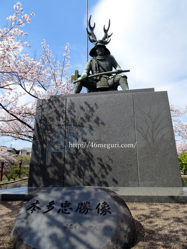 公園の入り口に甲冑姿の戦国武将の銅像があります。これは桑名城主にもなった、徳川四天王のひとり本多忠勝の銅像です。本多忠勝は徳川家康の家臣団の中でも特に人気の武将。また愛知県の三河岡崎城内にある龍城(たつき)神社では、神として祭られています。