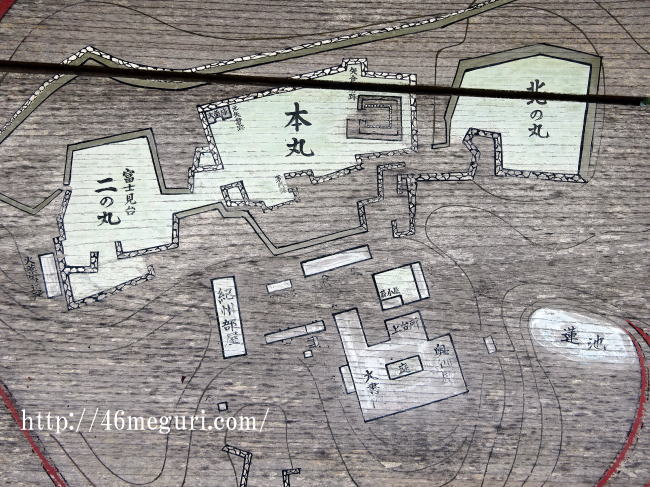 では、いよいよ城内を散策してみましょう!まずチェックしておきたいのは田丸城の入口付近にある縄張り図の看板。