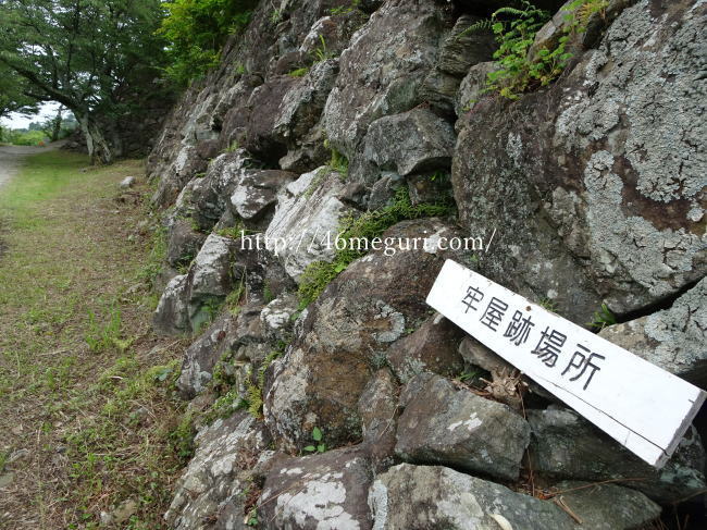 本丸石垣沿いに奥に進んでいくと、牢屋跡場所があります。