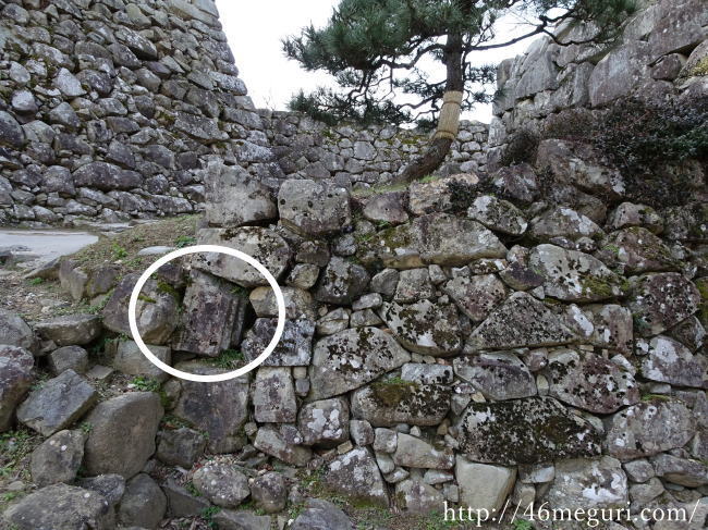 彦根城の石垣にも、移築転用されたものがあります。