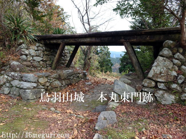 水の手曲輪からは鳥羽山城が見えます。