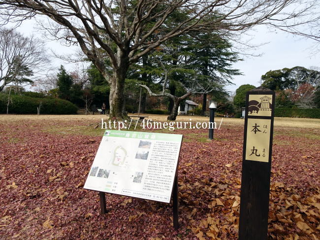 それでは本丸に入ってみましょう。本丸も公園として整備され、芝生広場が広がっていますが、まず目に入るのは天守台ですね。