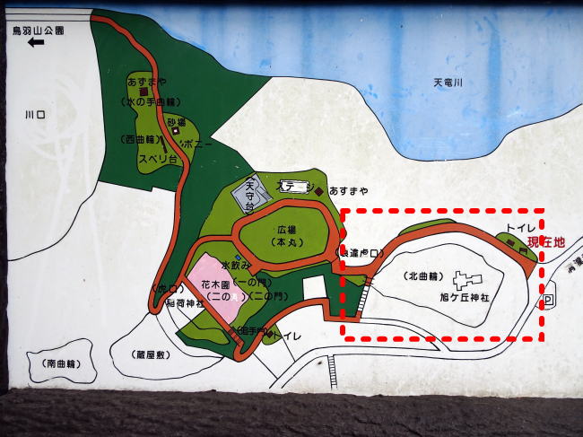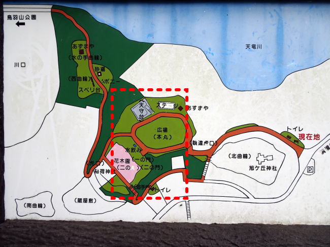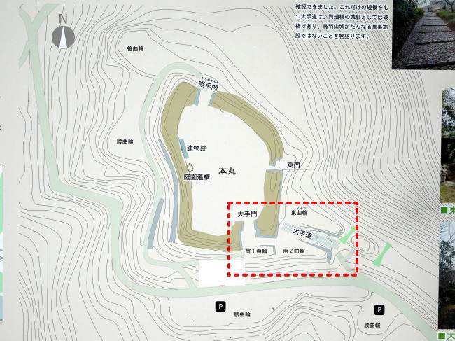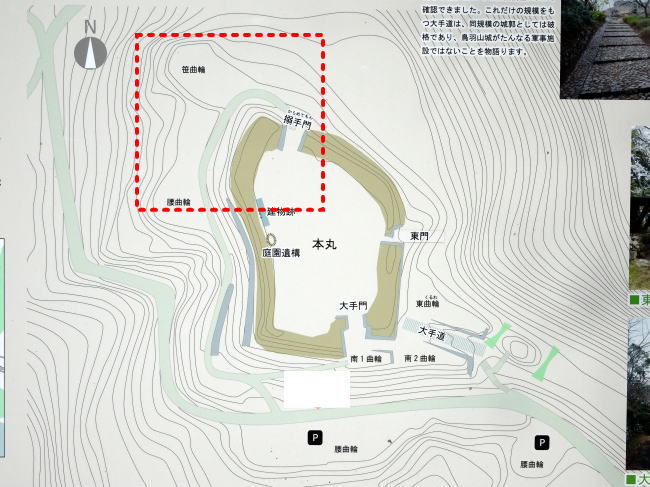 余談ですが、鳥羽山城公園の駐車場は二ヵ所ともかつての帯曲輪跡です。