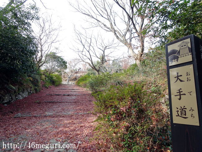 これが大手道。まっすぐかと思いきや早速曲がっている事がよく分かります。