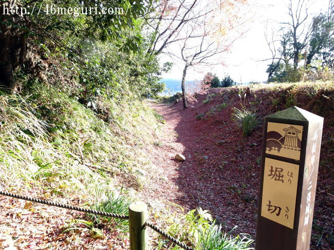 本丸・二の丸方面から水の手曲輪に向かう途中にも虎口があるのですが、堀切跡もハッキリ確認できます。