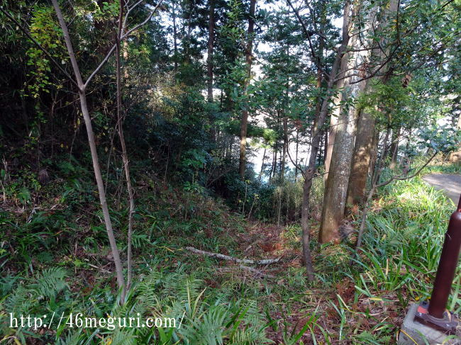 堀切を抜け、北曲輪だった旭ヶ丘神社を通りこすと、曲がった道があります。