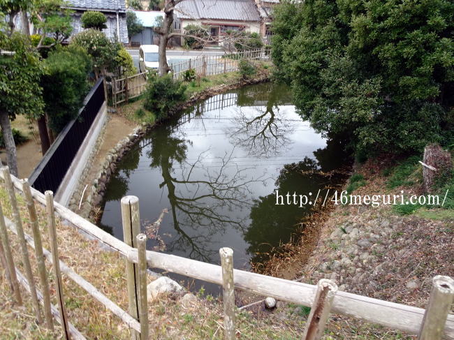 本丸下にある三日月堀、三日月みたいに半円形になっているのでこの名前が付きました。近くに民家が建っていますが、これだけの遺構が残っているのは嬉しいですね!