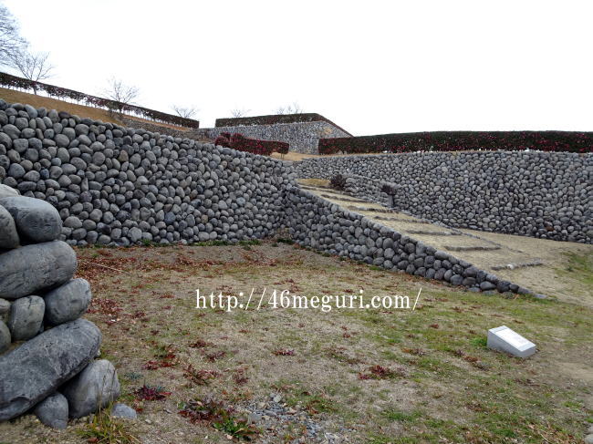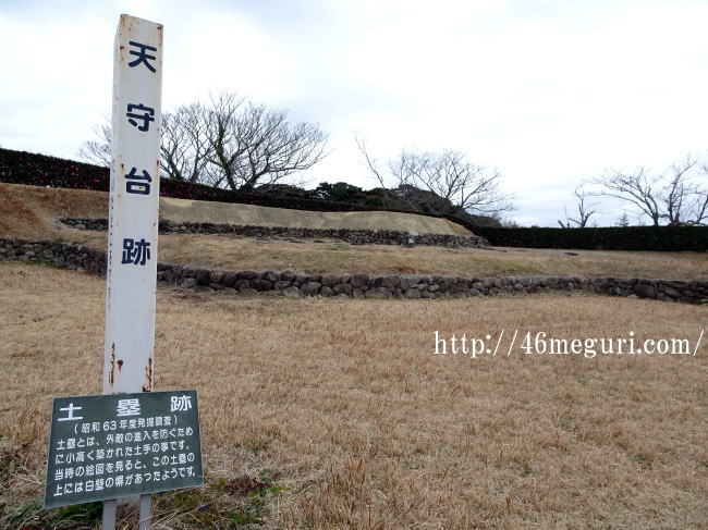 それではまずは遺構がたくさんある東半分から巡ってみます。トイレのある広場から東に進むと天守台があった本丸に出ます。