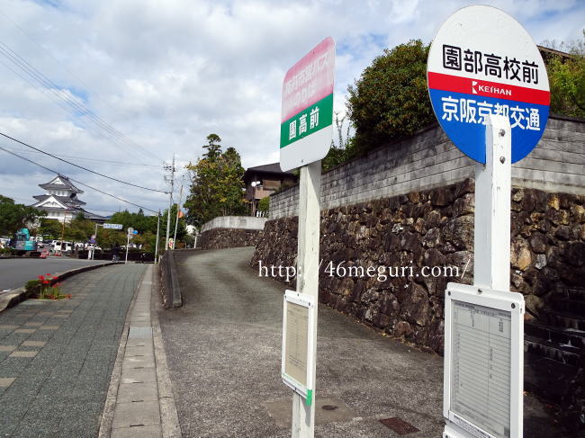 その後は、園部高校前バス停で降りれば、目の前が園部城跡です。