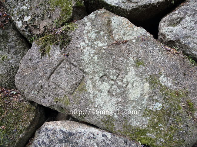 改修工事には複数の大名家が参加したので、自分たちが苦労して運んだ石垣の石を間違って持っていかれない様に、この様な独自の印を石に入れたのです。