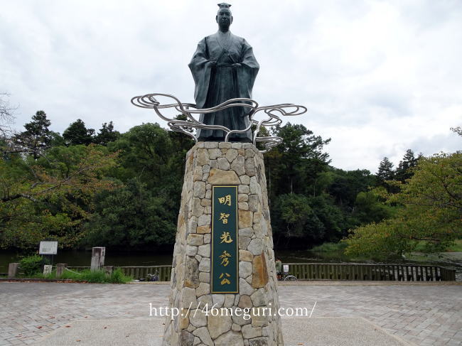 南郷公園で、もうひとつチェックしておきたいのがこれ、明智光秀の銅像です。