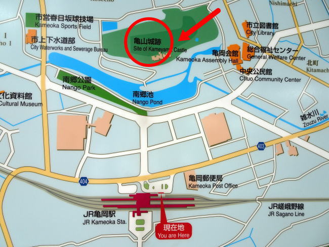 現在では住宅地や商業地となっていますが、亀山城周辺には遺構を示す看板も建っていますので、歩いて巡ってみることをオススメします。